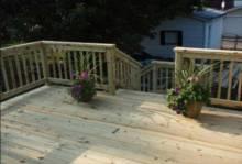 Pressure treating is a process that forces a chemical preservativedeep into the wood. The wood product is placed into a humongouscylindrical holding tank, and the tank is depressurized to remove allair. The tank is then filled with the preservative under high pressure,forcing it deeply into the wood. The tank is then drained and theremaining preservative reused. The wood is removed from the tank andprepared for shipment to your local lumberyard.